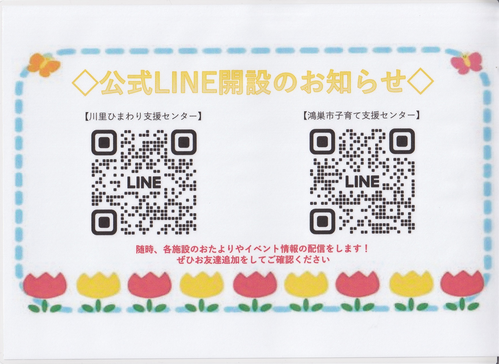 9月16日(火)から各施設にてお友達追加用のQRコードを掲示しております。