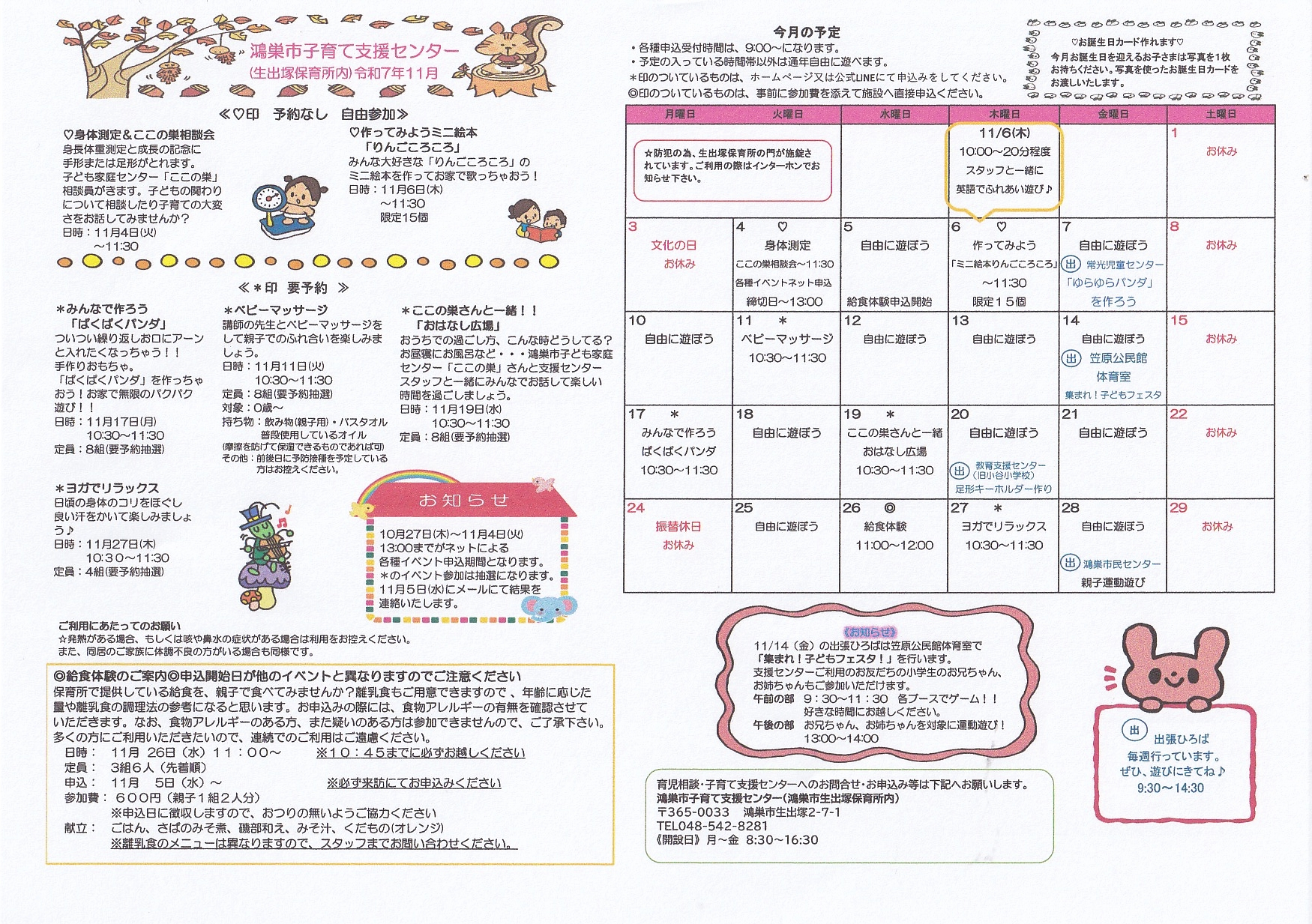 【鴻巣市子育て支援センター 予約フォーム】