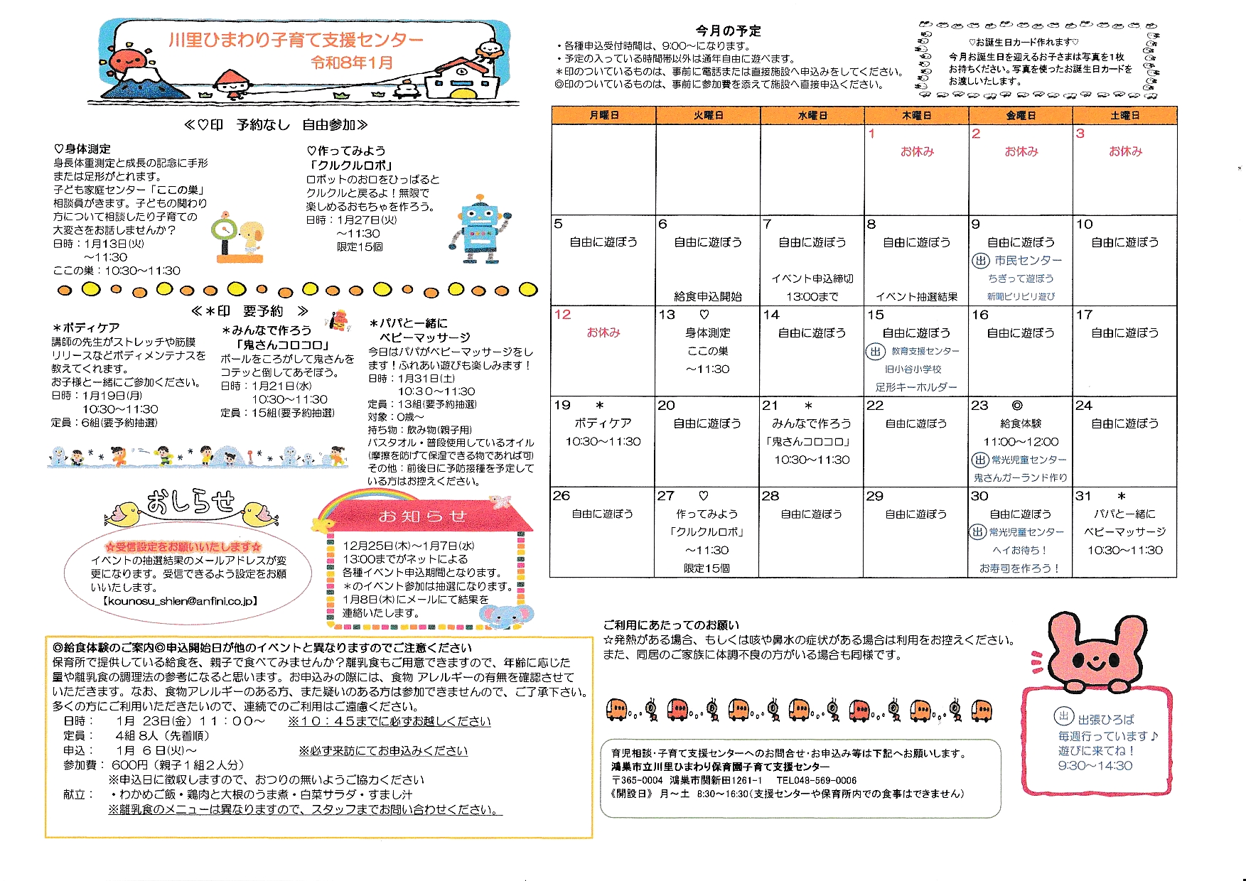 「みんなで作ろう鬼さんコロコロ」の日程に誤りがありました。
